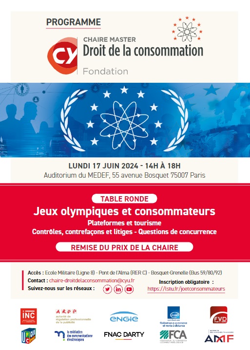 COLLOQUE « J.O. ET CONSOMMATEURS » ORGANISE PAR LA CHAIRE DROIT DE LA CONSOMMATION DE L’UNIVERSITE CERGY-PONTOISE